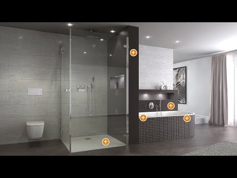 Weitere LED-Spots im Anbaumodul rücken auch die Badewanne ins rechte Licht. Das Anbaumodul wird immer in Verbindung mit einem Wannenträger eingebaut und ist passgenau auf die Länge des Wannenträgers abgestimmt. Der im Fußboden versenkte Duschwannenträger ermöglicht eine bodengleiche Montage der extra flachen Duschwanne.