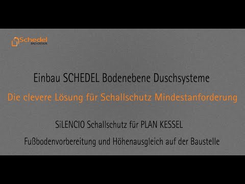Das Video zeigt den Einbau des SiLENCIO Schallschutzsets für Mindestanforderung in Verbindung mit dem Duschsystem PLAN KESSEL von SCHEDEL. Das Duschsystem hat ein werkseitig integriertes Gefälle und ist nach dem Einbau sofort befliesbar. Für den Einbau mit dem Schallschutzset für Mindestanforderung ist die Verwendung eines Unterbauelements unbedingt erforderlich.